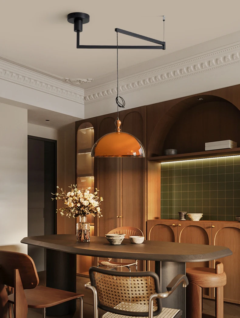 Brown Acrylic Lampshade Pendant Light With Dark Wood E27 Bulb For Dining Room Bar Bedroom Wire Adjustable