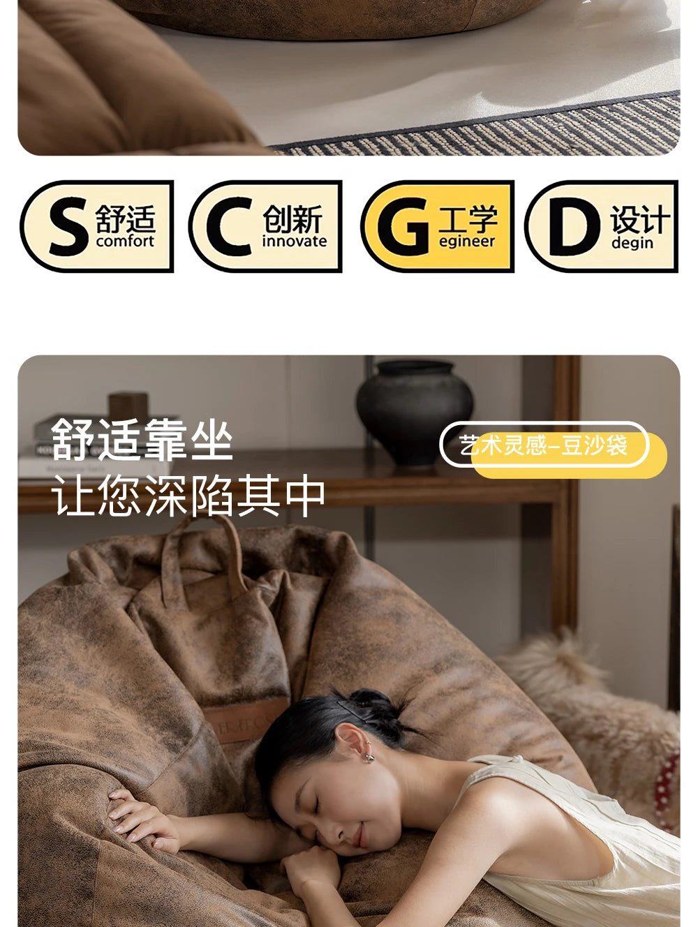 This European Designer Bean Bag Sofa combines comfort and style, offering a modern Nordic touch to any room. It's crafted for those who appreciate a blend of functionality and aesthetic appeal in their furniture.