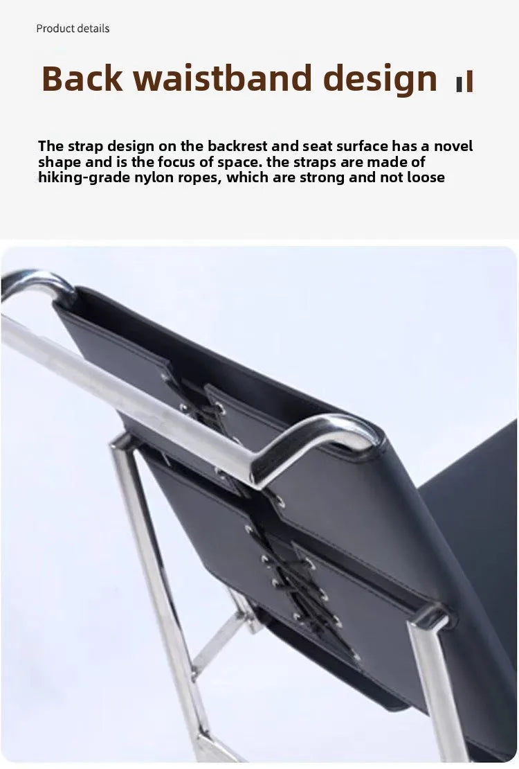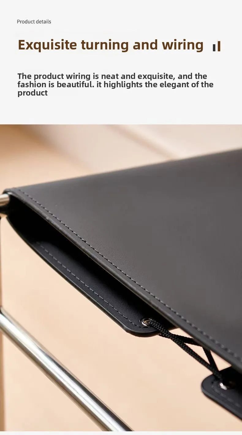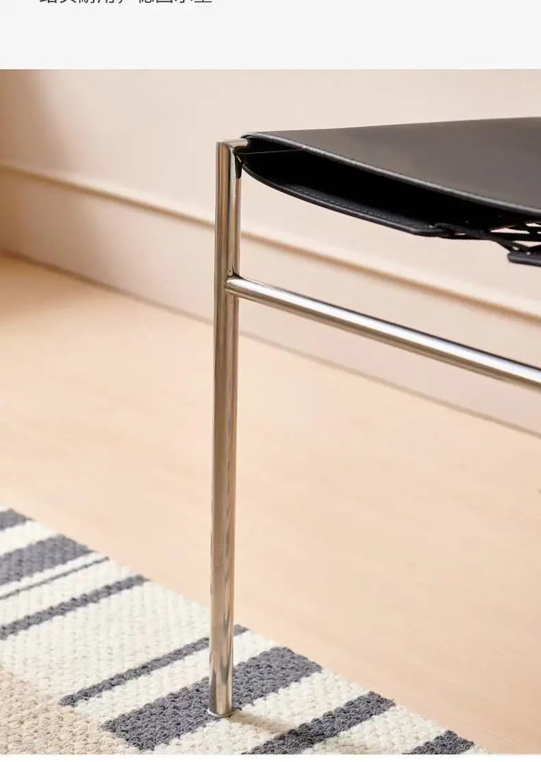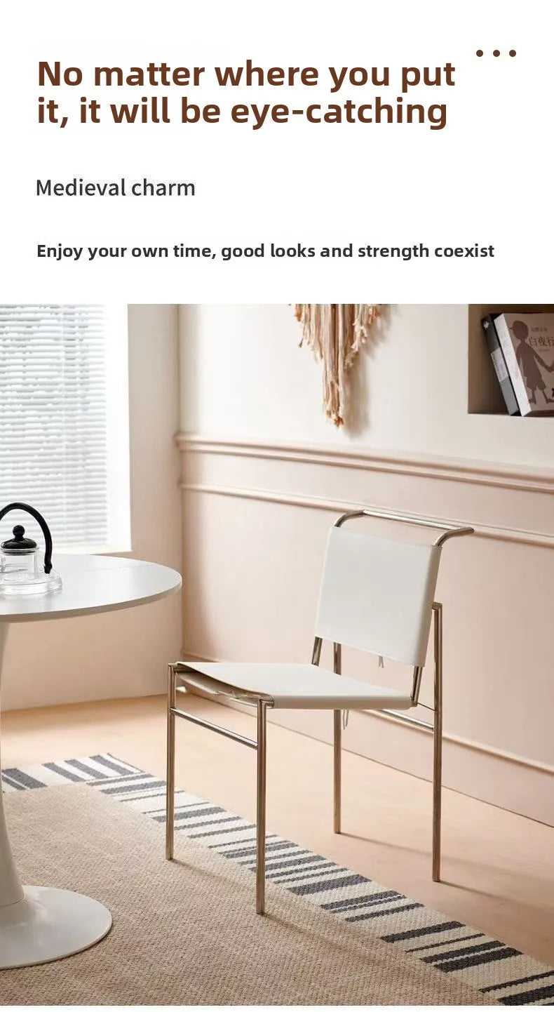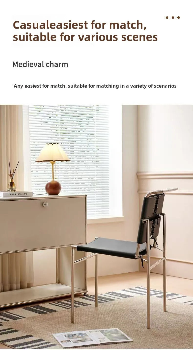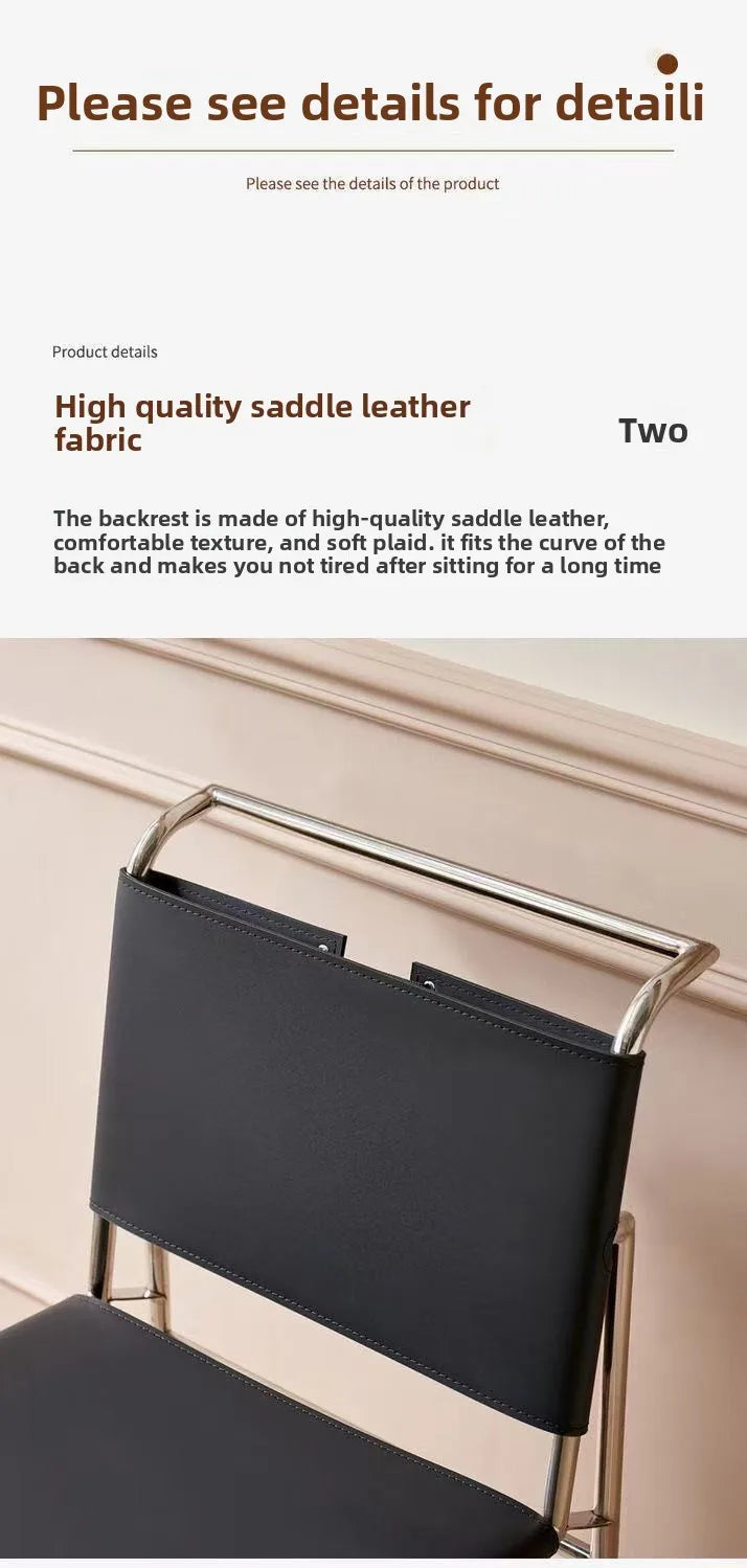 This Italian minimalist saddle leather dining chair combines elegance with comfort, featuring a unique blend of materials that add a touch of Nordic designer light luxury to any dining area.