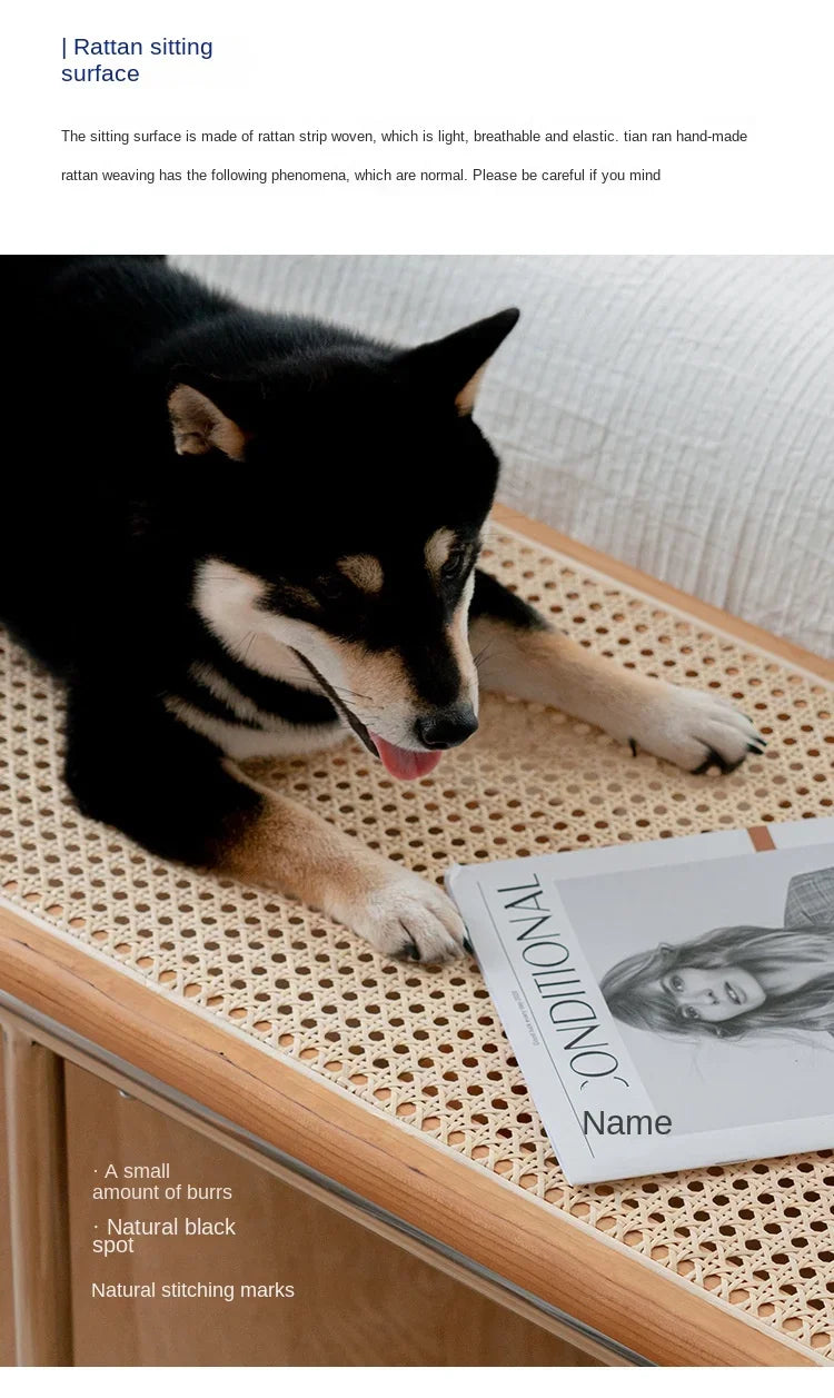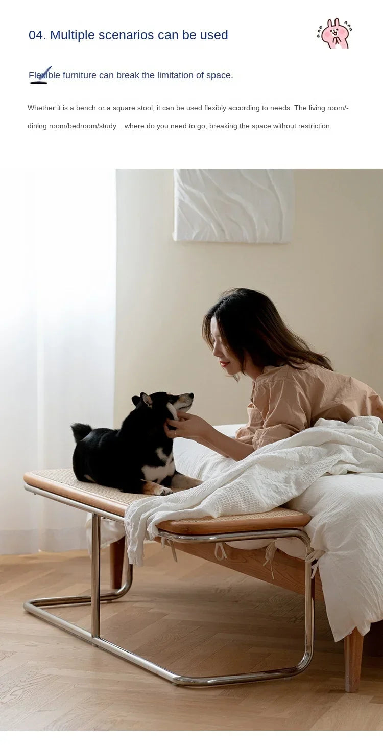 This Nordic Creative Rattan Bench combines functionality with style, designed to enhance the aesthetic of any room while providing a practical furniture solution. Crafted from solid wood and woven rattan, it serves as a versatile piece suitable for various spaces in your home.