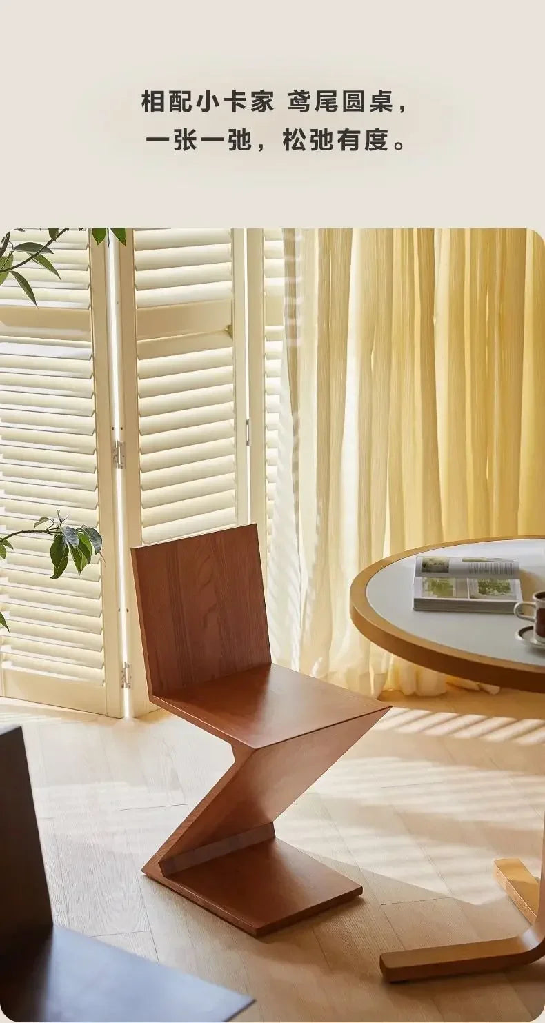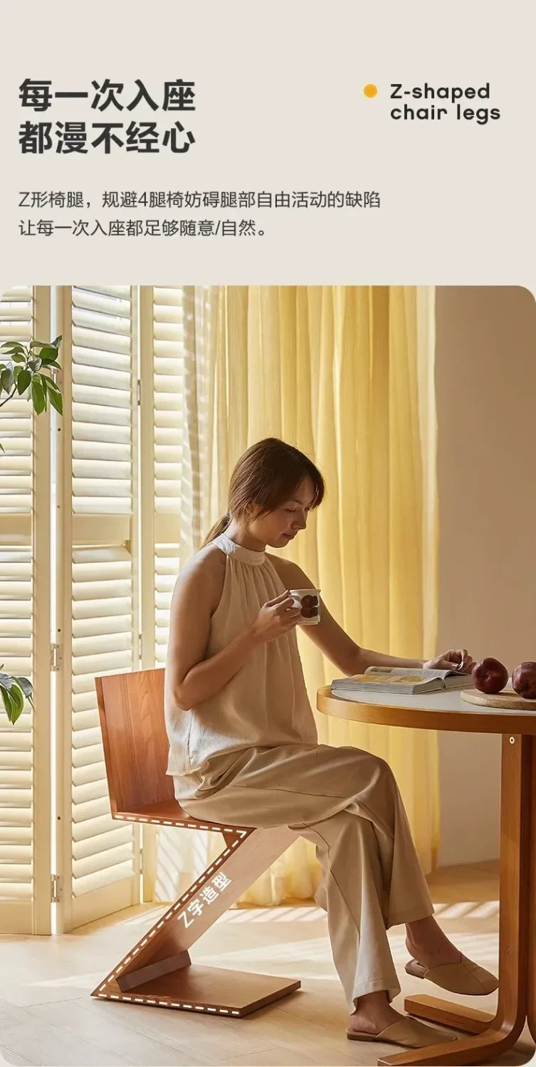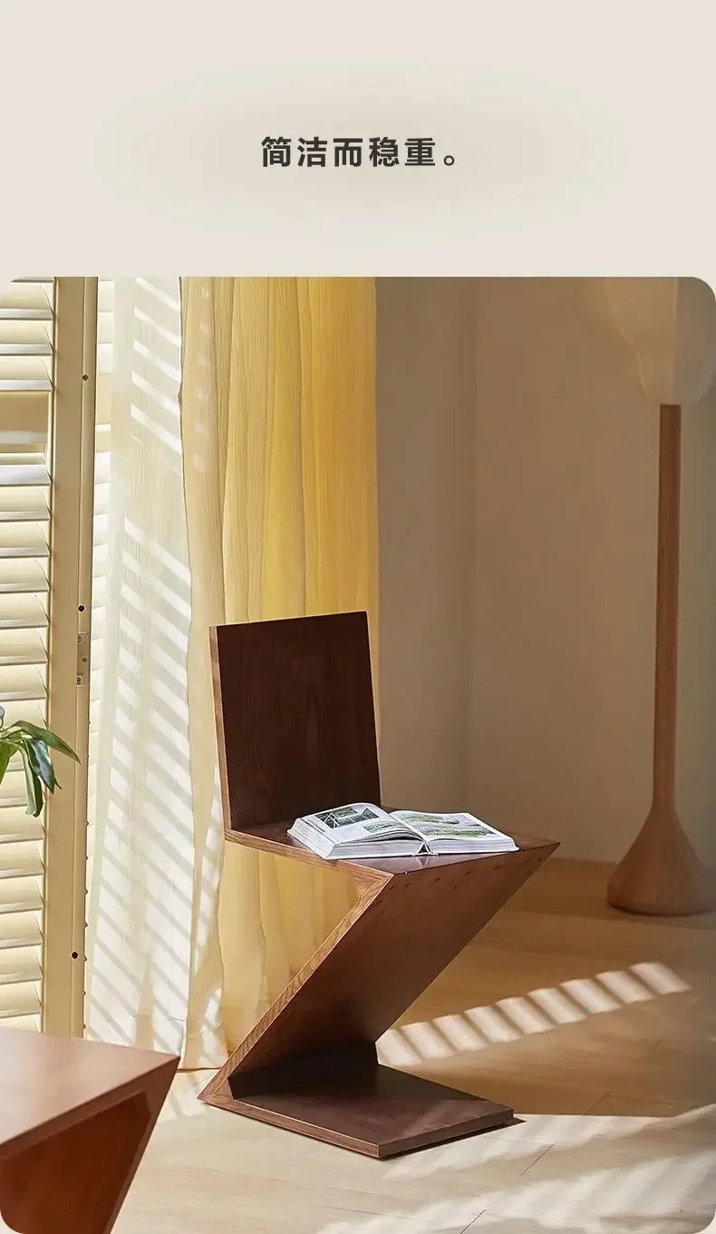 This Nordic Light Luxury Z-Shaped Solid Wood Chair combines functionality with a creative design, making it a versatile addition to any modern home. Crafted from high-quality solid wood, its unique Z-shaped structure not only provides sturdy support but also adds an artistic touch to your living room, dining area, or bedroom.