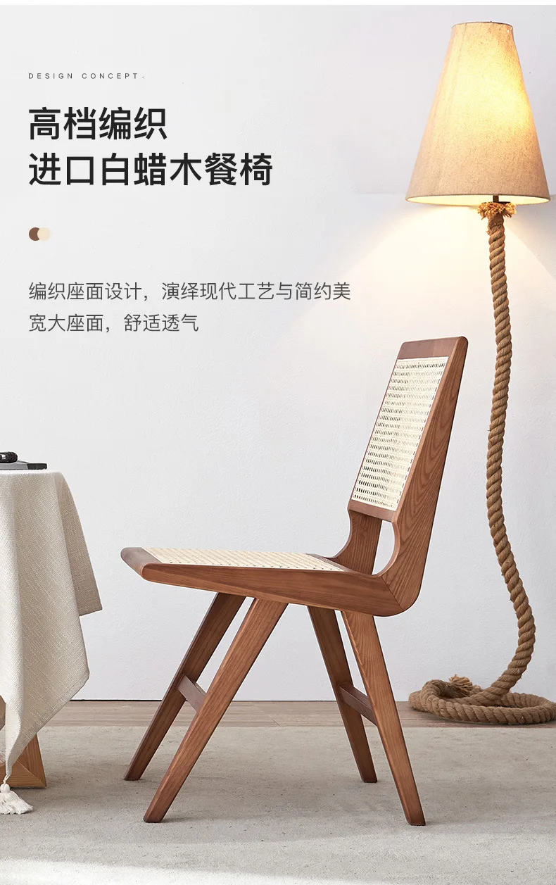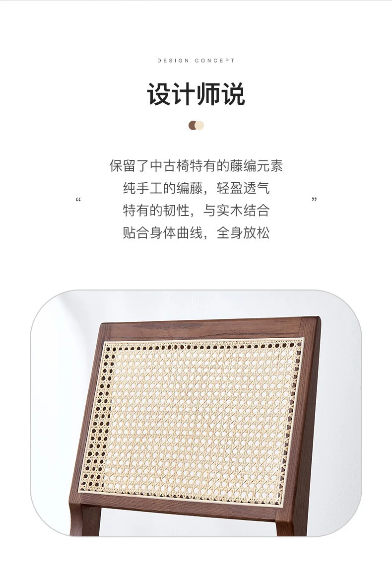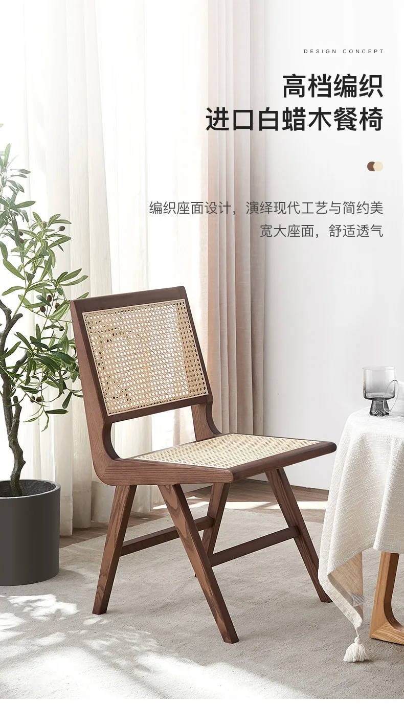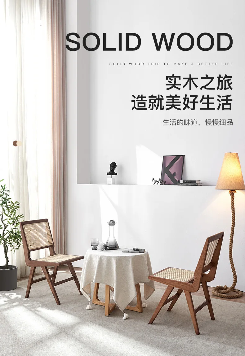 Nordic medieval rattan chair rattan leisure ins style Japanese homestay restaurant solid wood back