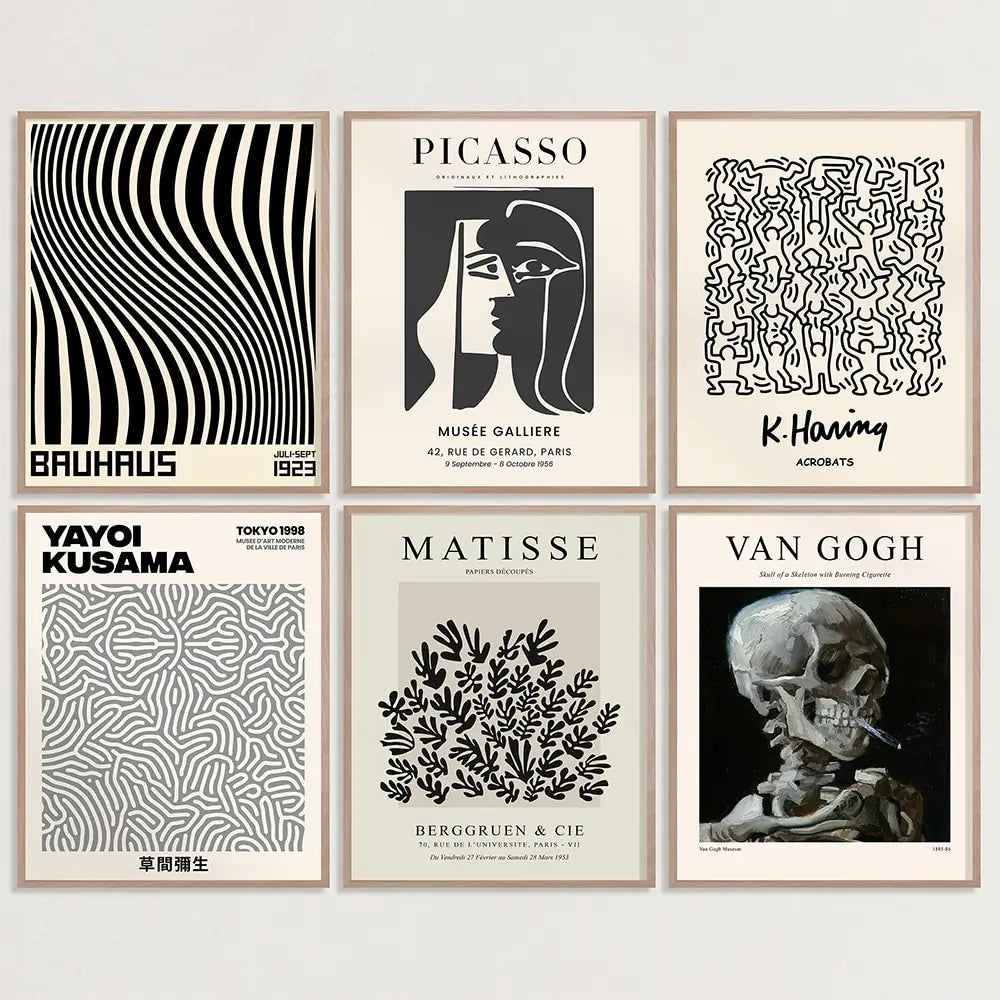 Enhance your living space with our collection of Retro Abstract Gallery Wall Art, featuring iconic styles inspired by Yayoi Kusama, Matisse, and Bauhaus movements. These black and white canvas prints bring a touch of sophistication and historical art culture into your home. Ideal for museum enthusiasts and lovers of abstract art, these prints are ready to hang and transform any room.